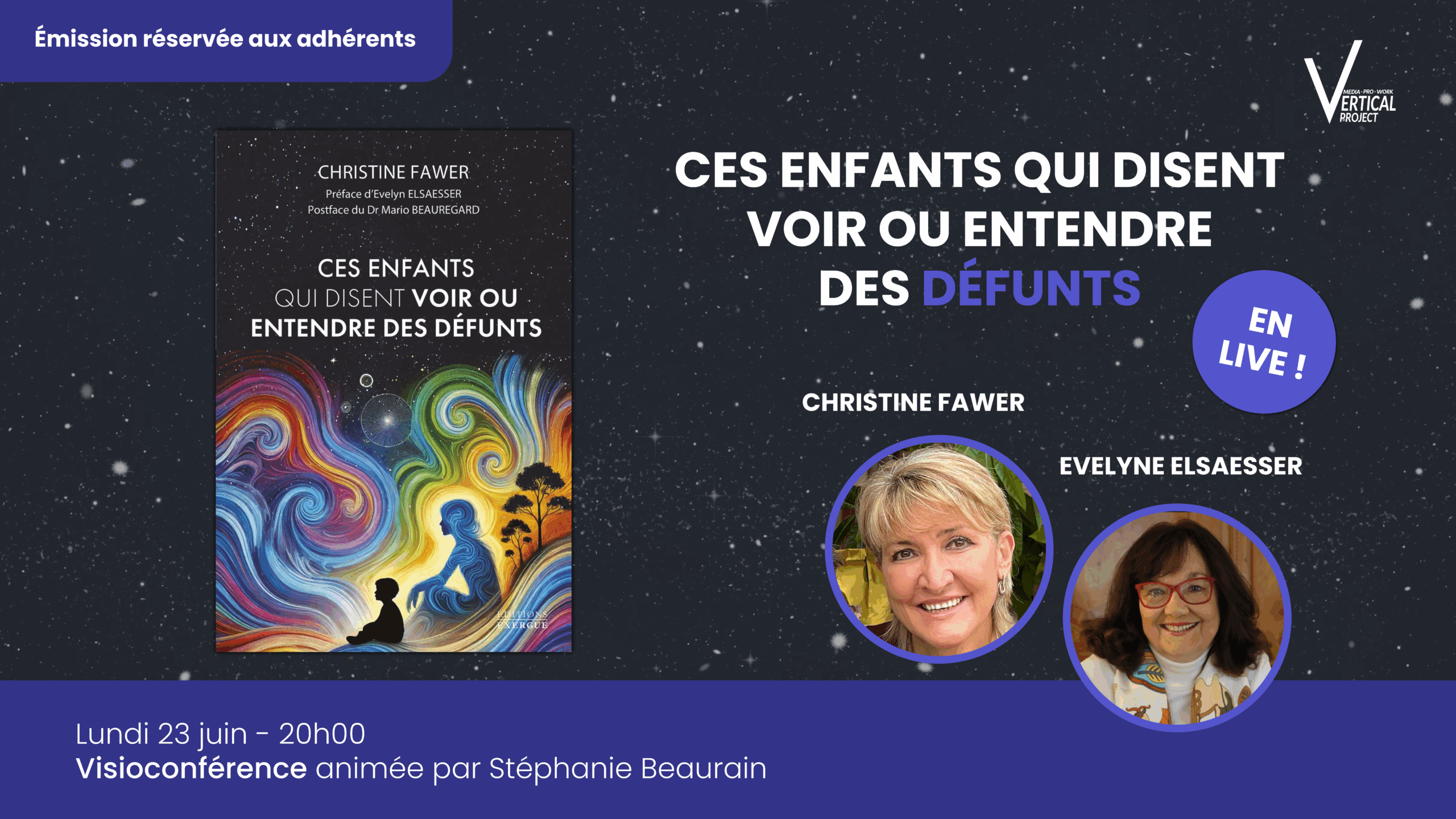 VERTICAL PROJECT MEDIA a le plaisir de vous inviter à assister en direct ce lundi 23 juin 2025 à 20h à une interview exceptionnelle avec Christine Fawer et Evelyne Elsaesser, autour de leur ouvrage :