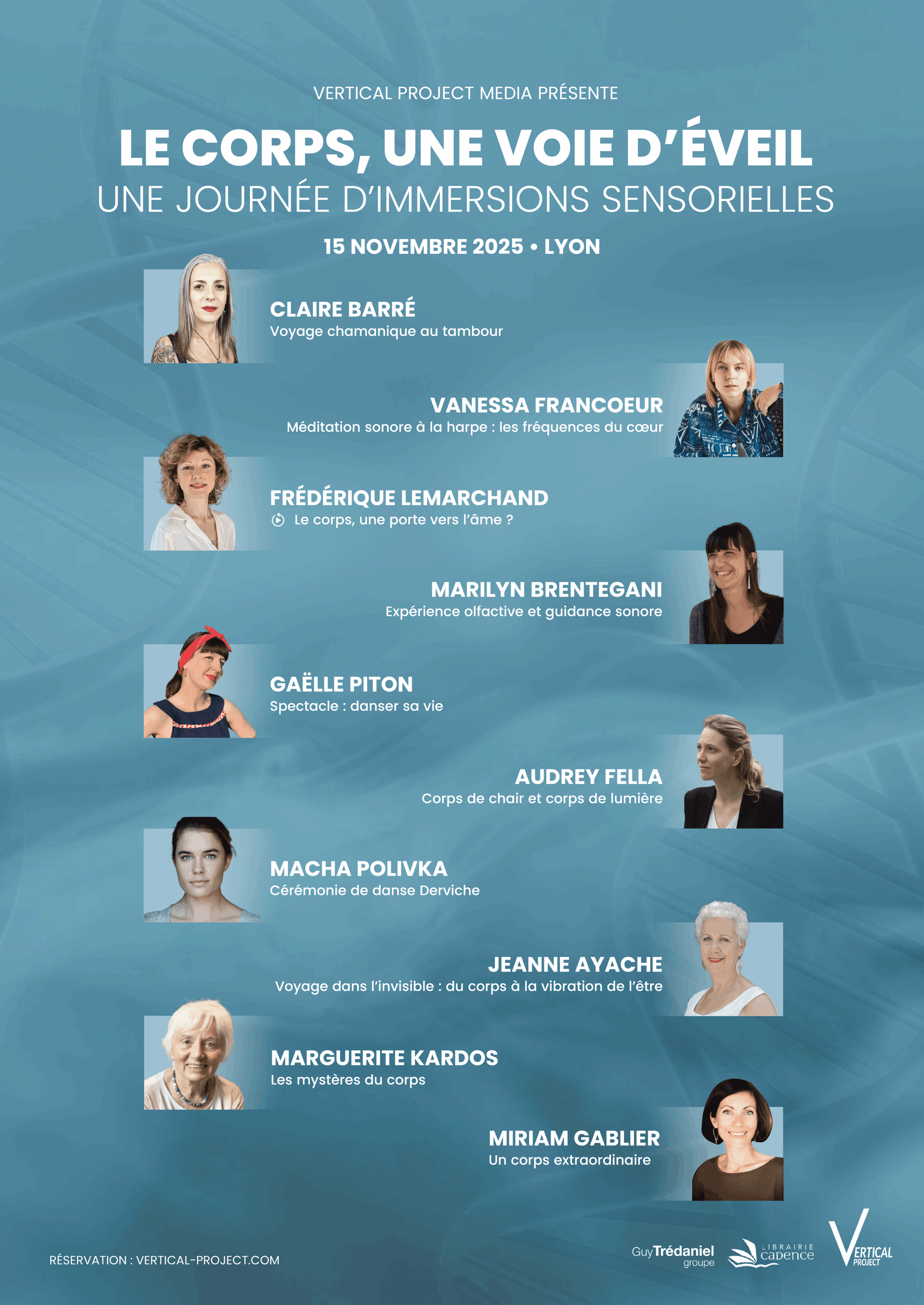 Vertical Project Média vous propose un nouvel événement d’une journée “Le corps, une voie d’éveil”, le samedi 15 novembre 2025 à l’Espace de l’Ouest Lyonnais, de 9H30 à 18H15. Journée animée par Aurélie Aimé et Jocelin Morisson.