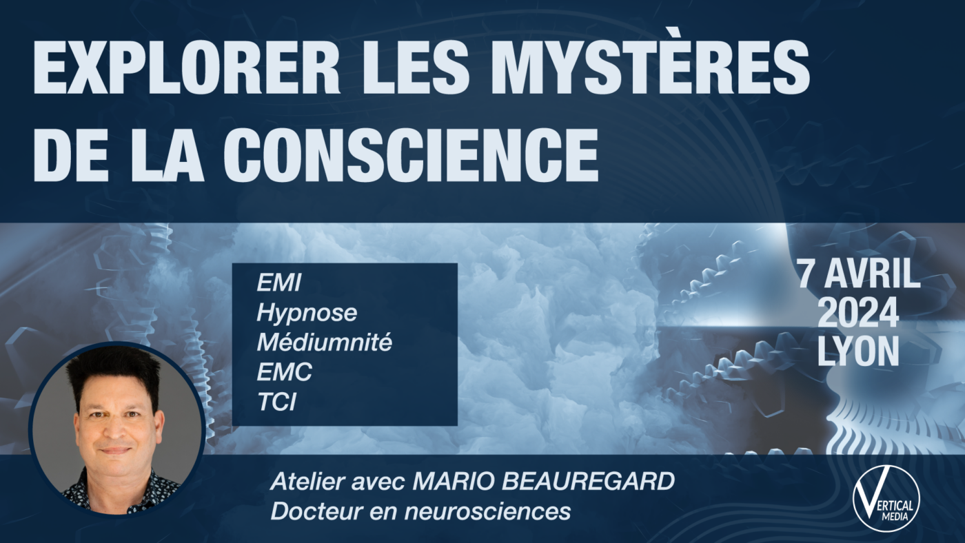 Vertical Project Média et le Dr. Mario Beauregard vous présentent, le dimanche 7 Avril 2024 de 10H à 18H, une Masterclass dédiée aux mystères de la Conscience.