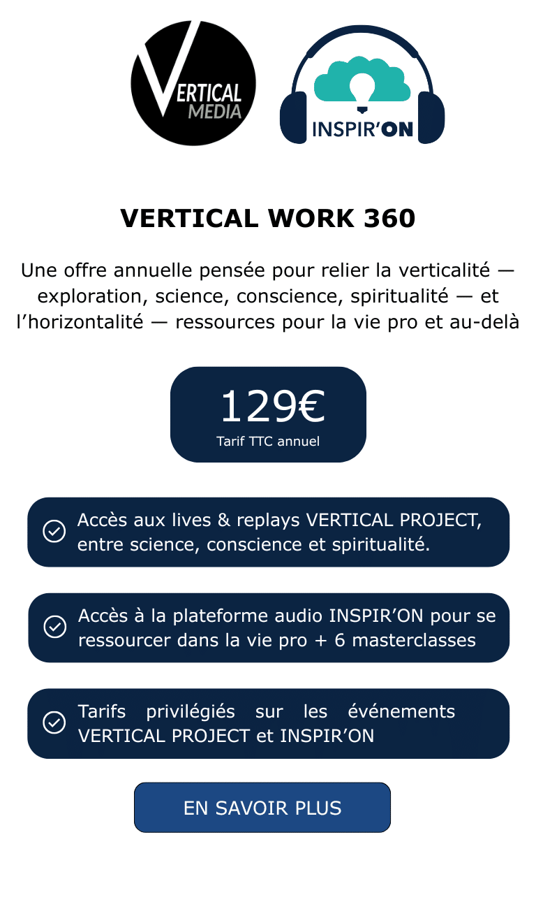 VERTICAL PROJECT élargit le regard : des contenus et événements entre science, conscience et spiritualité, pour explorer, comprendre, questionner et s’ouvrir à l’invisible. (Voici l’offre ICI)