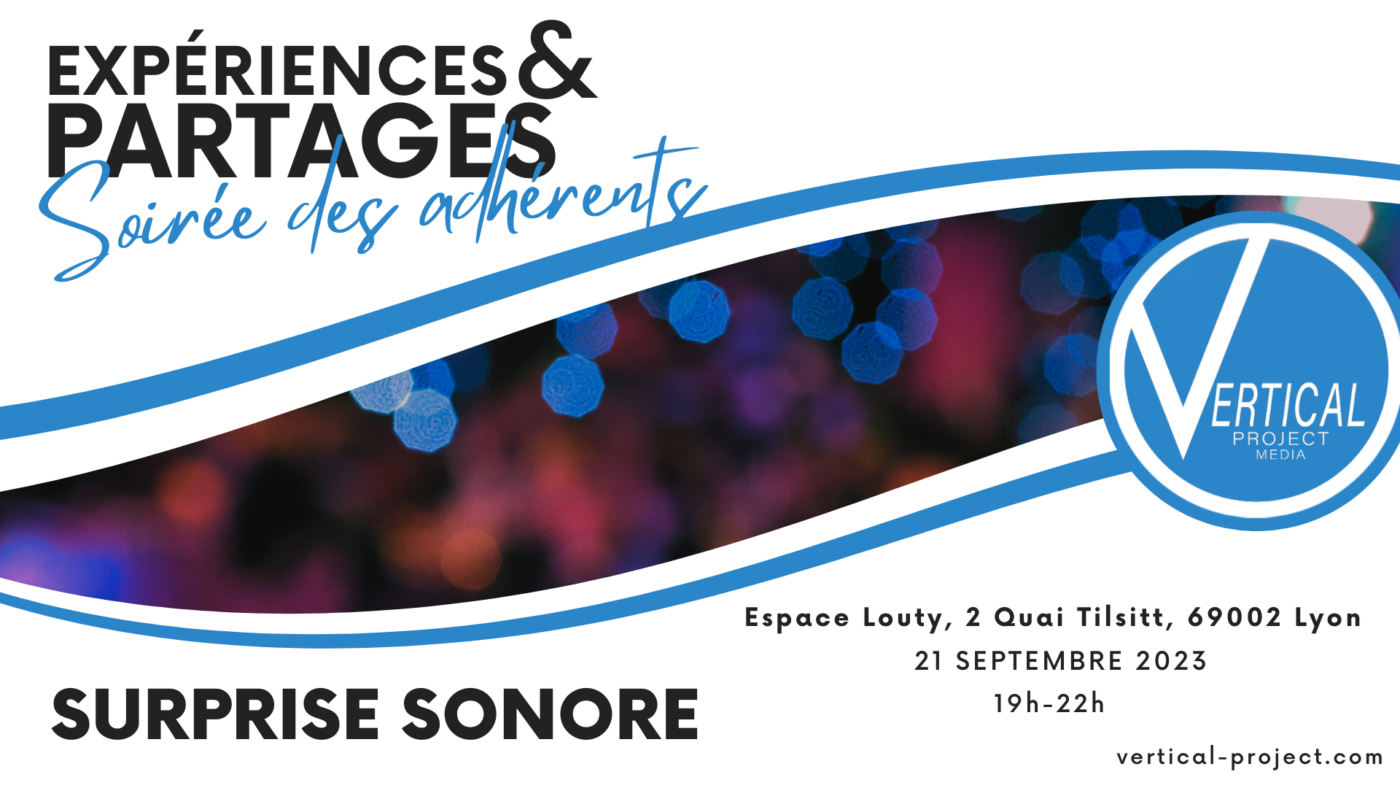 VERTICAL PROJECT MEDIA a le plaisir de convier ses adhérent.e.s et leurs accompagnant.e.s à une soirée spéciale qui aura lieu le 21 Septembre 2023 à l’Espace Louty, situé au 2 Quai Tilsitt, 69002 Lyon, de 19H30 à 22H en présence du staff et d’une invitée surprise.