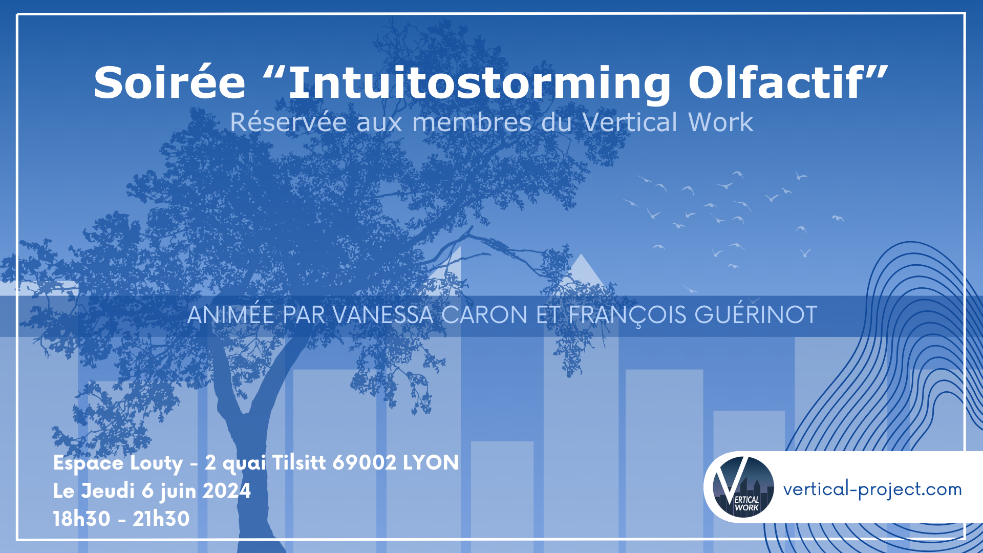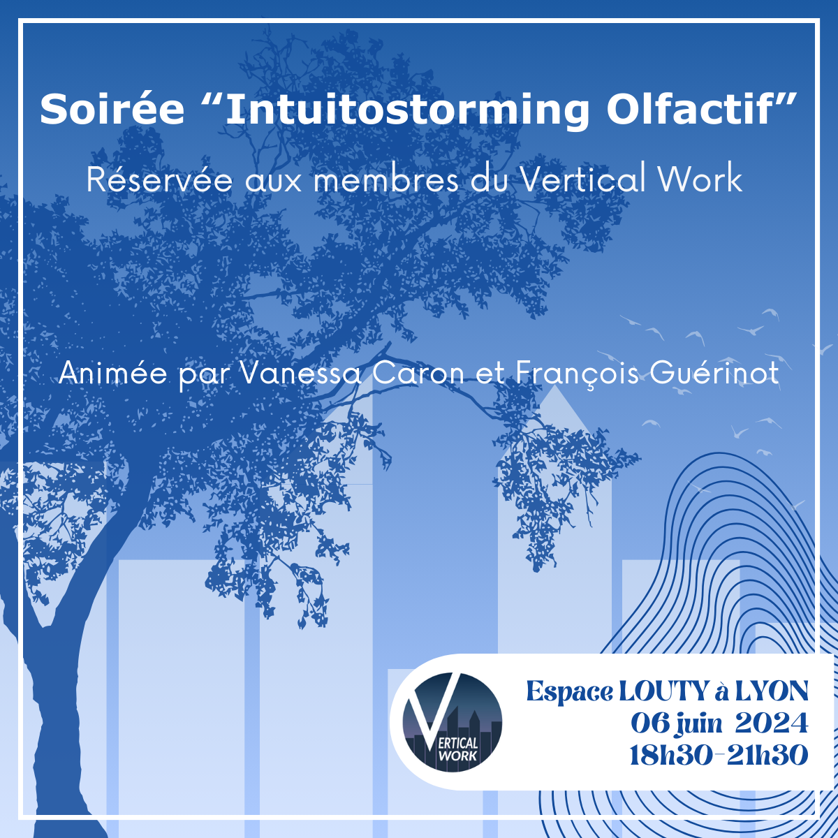 Nous avons le plaisir d’inviter les membres du réseau « Vertical Work » à la soirée « Intuitostorming Olfactif » qui se déroulera à partir de 18h30 à l’Espace Louty, à Lyon.